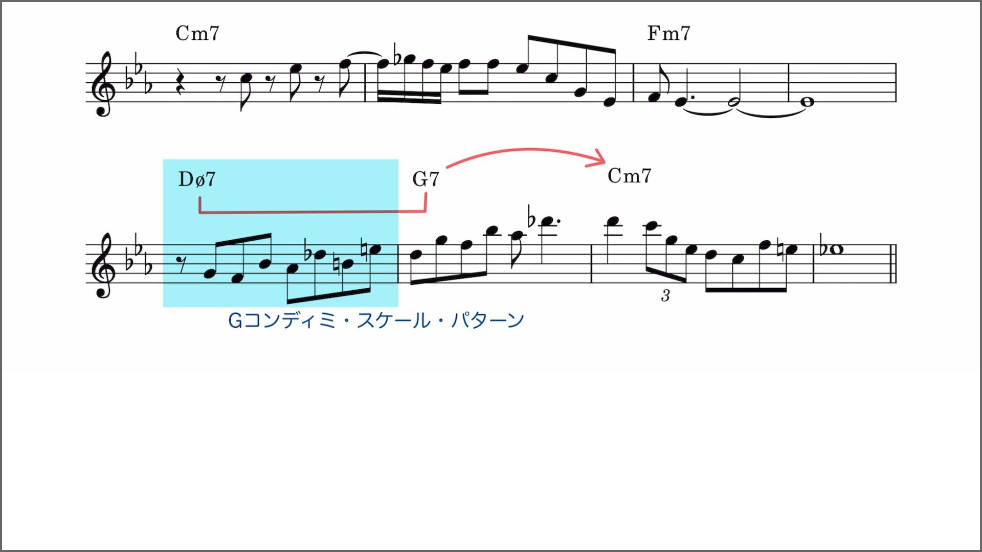 解説動画 マイナー・ツーファイブ進行をコンディミ・スケールで演奏する方法 B-013